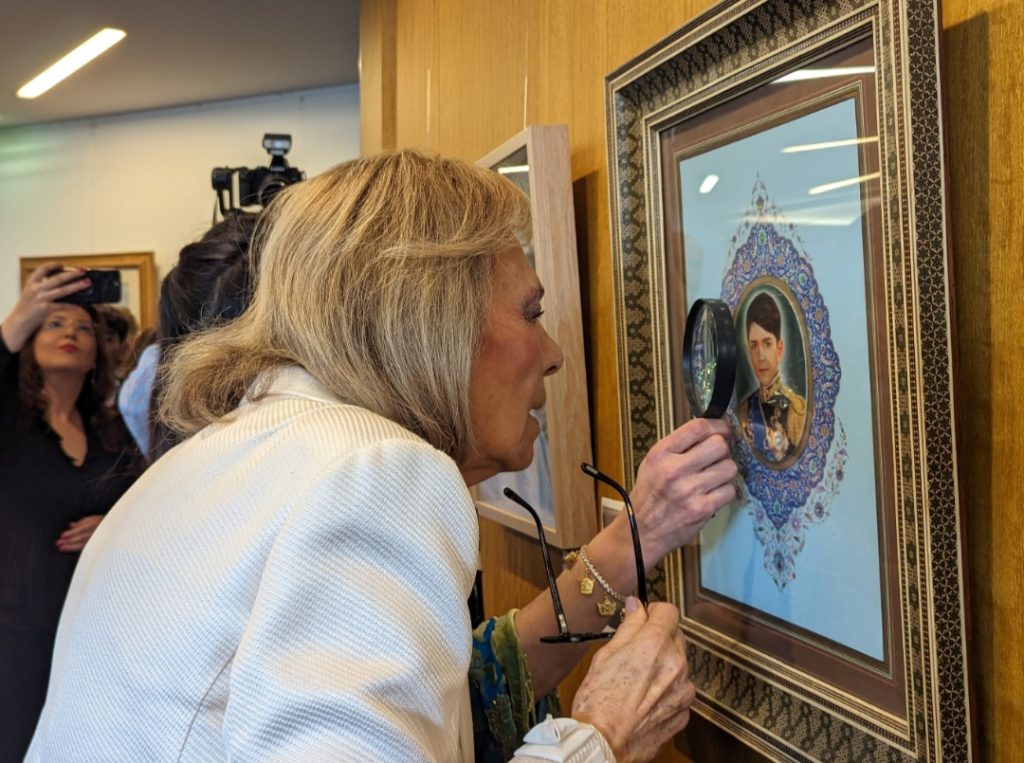 L’impératrice Farah Pahlavi a visité les œuvres de sa collection privée, regroupant plus de quatre-vingts artistes, dont des peintres, des photographes et des miniaturistes, réparties sur deux étages. Cette collection a été constitué tout au long de ses nombreuses années d’exil. Elle est faite d’œuvres très diverses dont de nombreuses sont des cadeaux d’artistes internationaux.