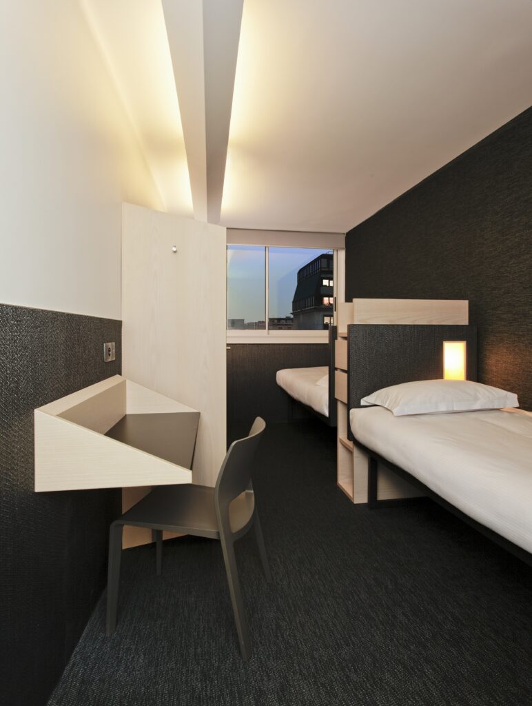 Optez pour une de nos chambres twin. Avec 2 espaces composés chacun d’un lit simple, un bureau et une armoire de rangement, vous disposerez du calme dont vous avez besoin.